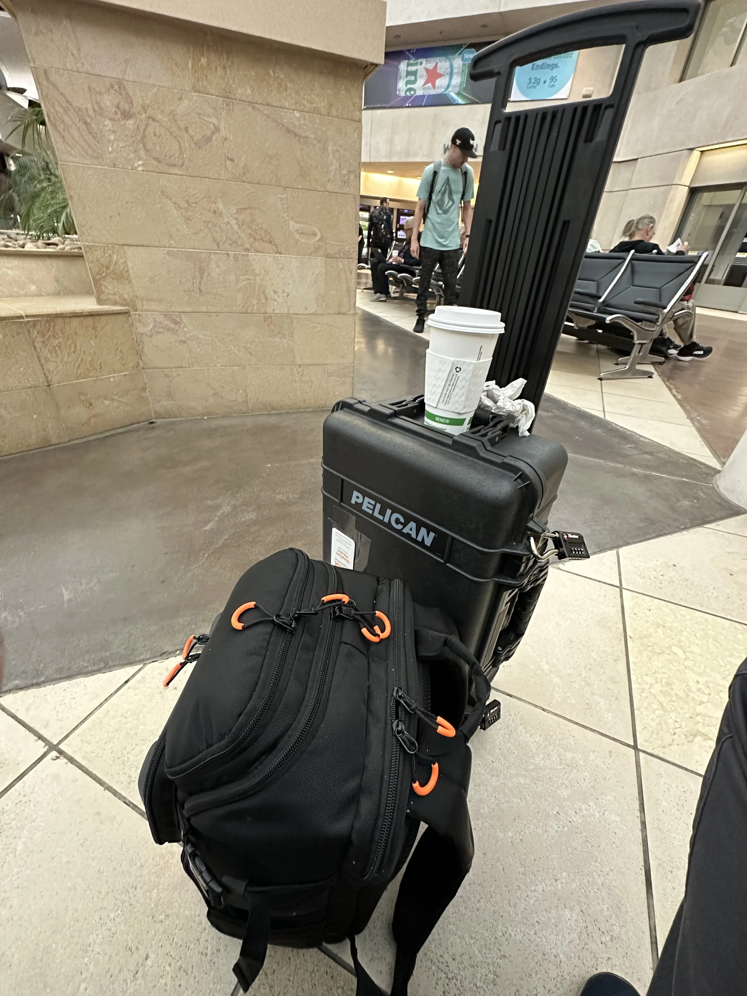 On a recent feature film I shot, I packed everything I needed into this carry on case and backpack. The only thing I didn’t have with me was two travel tripods which were in a checked suitcase.
